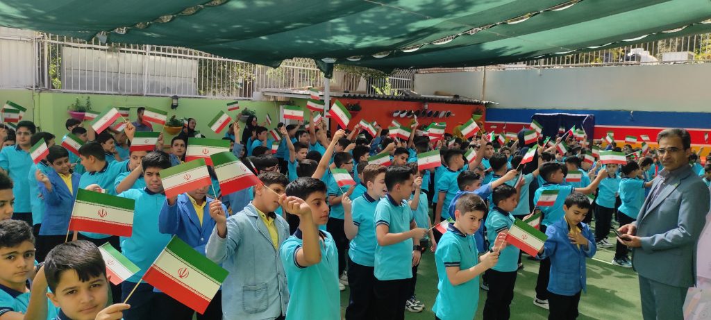 همزمان با طنین انداز شدن سرود “ای میهن خدایی” در فضای عطرآگین مدرسه رویش، پرچم سهرنگ میهنمان ایران به اهتزاز درآمده و همه دانشآموزان با افتخار و احترام سرود را زمزمه میکردند. این لحظه درحقیقت نماد پیوند میان هویت فرهنگی و آموزشی دانشآموزان و کشور عزیزمان بود.