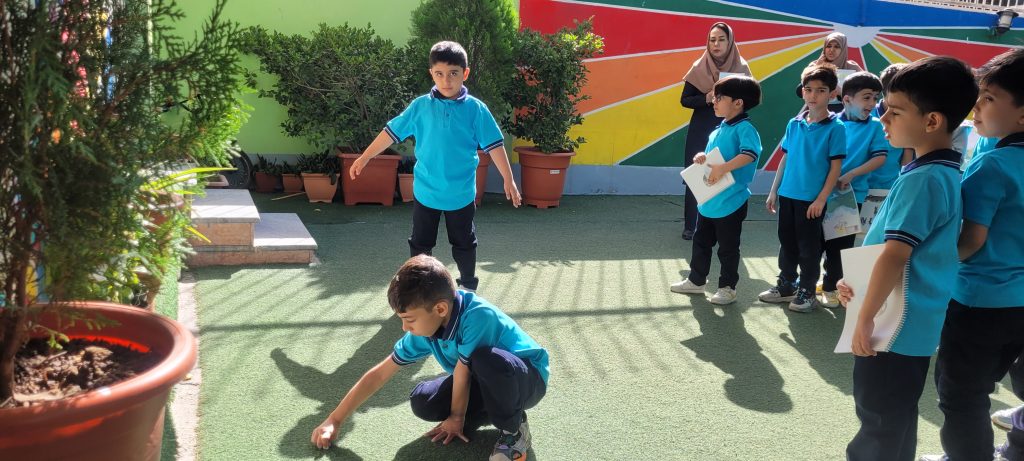 آنها با استفاده از زوایای مختلف بدن خود و ترسیم آنها بر روی زمین شاهد پیدایش اشکال مختلف و جالب میباشند. پس از آن معلم با شنیدن نظرات و توضیحات تکمیلی مفهوم سایهها را جمعبندی میکند و به اهمیت نور و پدیدههای طبیعی اشاره میکند.