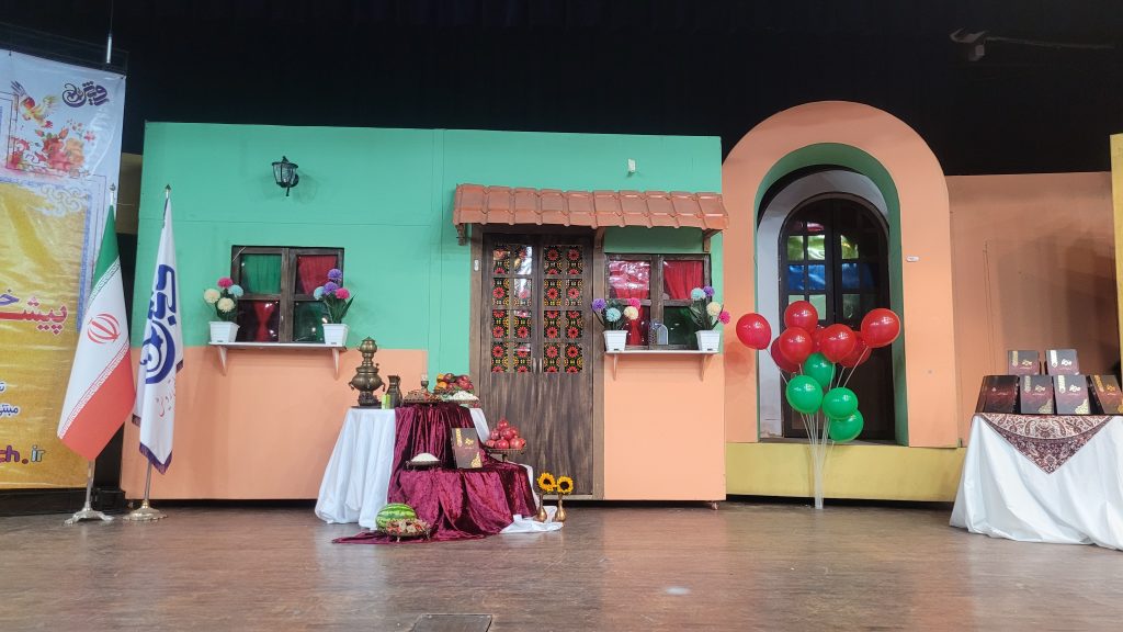 همچنین در گوشهای از استیج تالار سفرهای رنگارنگ و یلدایی پهن شدهبود. دانههای خوشرنگ انار، هندوانه سرخ، سپیدی شکوفهها و برنجکها، عطر خوش گلهای آفتابگردان در کنار فالها و دیوان حضرت حافظ زیبایی این سفره را دوچندان مینمود.